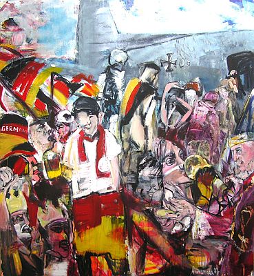 Viele sagen, aber es geht doch nur um ein Fußballspiel, bei dem der Gegner aus einem anderen Land zu schlagen ist. Dass die Regierung gleichzeitig Truppentransporter mit Soldaten nach Afghanistan und in den Libanon schickt und nebenbei die Mehrwertsteuer erhöht, nimmt die jubelnde Menge in ihrem Sommernachtstraum gar nicht wahr.