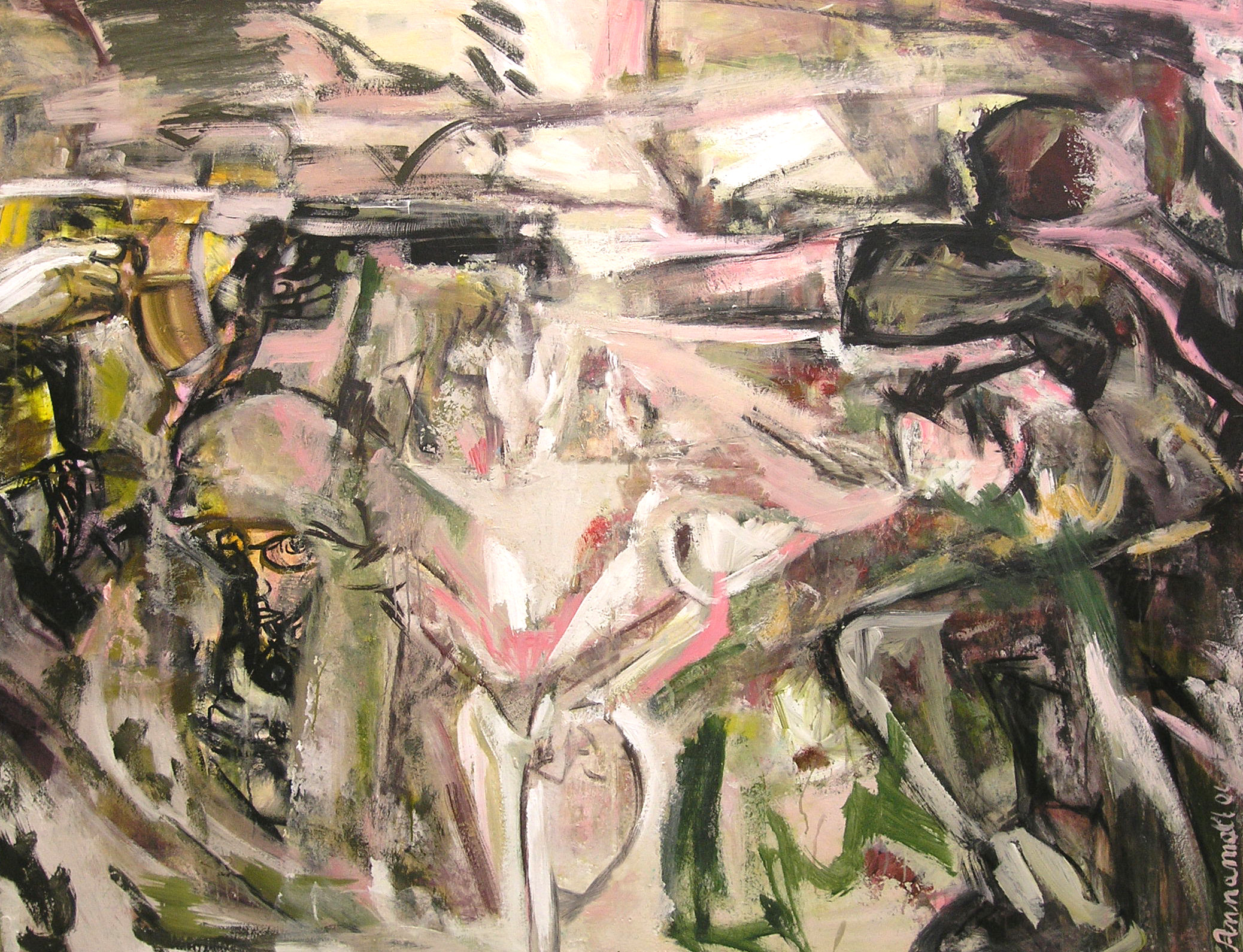 Wer schon einmal durch ein Schlafmohnfeld gegangen ist, ahnt nichts Böses. Dieses Meer aus zartrosa Blüten, das im Wind leicht knarrt, hat mehr von einem Traum, als das es Angst verbreitet. Und doch - der Krieg macht vor keiner Landschaft halt. Egal wie friedlich oder romantisch sie auch wirken mag und welche Gefühle die Gegend bei den Menschen hervorruft. Das im Bild dargestellte Mohnfeld liegt in Afghanistan und in diesem Land herrschen stürmische Zeiten - es ist Krieg. Die Blütenpracht ist zerzaust und das Knarren wird von Explosionslärm übertönt. Wir sehen einen Soldaten, der im Mohnfeld Deckung bezogen hat. Um ihn herum wird heftig gekämpft. Auf der linken Bildseite erkennen wir eine Maschinenpistole, deren verschossene Patronenhülsen in der Bildmitte nach oben fliegen. Auf der rechten Bildseite steht ein Kämpfer, der mit einer Pistole zurückschießt. Das Blütenmeer ist niedergetrampelt und aus dem Knarren der Mohnhalme sind die Knarren in den Händen der Soldaten geworden. In diesem Jahr wird es auf dem Feld keine Ernte geben. Die Erde muß erst einmal von Blut, Gewehrhülsen und Minen gesäubert und neu kultiviert werden.